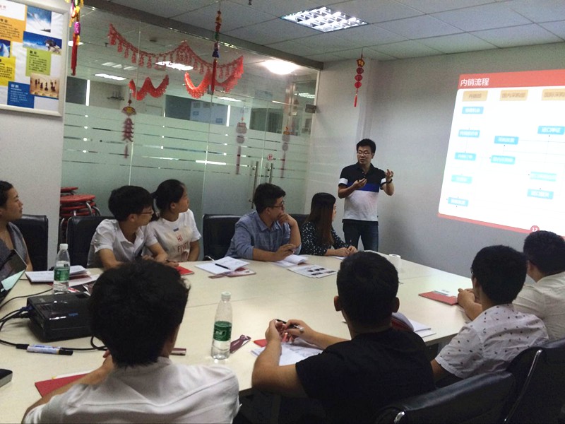 圖為學員入職后在孚盟廣州分公司會議室進行企業(yè)產品培訓