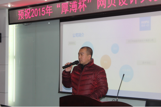 2015年“厚溥杯”網(wǎng)頁設(shè)計大賽由武漢厚溥教育科技有限公司技術(shù)中心主辦,技術(shù)中心于2015年11月中旬開始組織策劃,入圍決賽的學(xué)校由荊州職業(yè)技術(shù)學(xué)院、湖北國土資源職業(yè)學(xué)院、湖北科技職業(yè)學(xué)院、武漢工程職業(yè)技術(shù)學(xué)院、黃岡職業(yè)技術(shù)學(xué)院、武漢外語外事職業(yè)學(xué)院、湖北三峽職業(yè)技術(shù)學(xué)院、武漢軟件工程職業(yè)學(xué)院、河南水利與環(huán)境職業(yè)學(xué)院、河南信息統(tǒng)計學(xué)院、河南教育學(xué)院、貴州職業(yè)技術(shù)學(xué)院厚溥IT學(xué)院12所院校的23支隊伍組成,各校區(qū)于12月11號之前進行內(nèi)部選拔,最終每個校區(qū)確定2個團隊參加12月19號在光谷總部組織的總決賽。