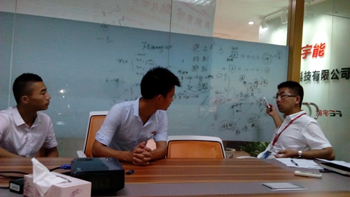 2014年8月8日,宇艾能科技杭州分公司總經(jīng)理王重遠正在給學(xué)生進行面試,面試過程中,向?qū)W生講授了大量的行業(yè)專業(yè)知識。