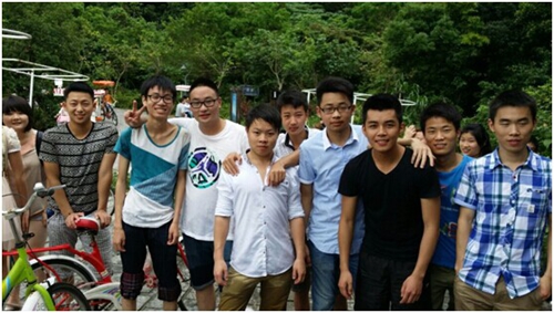 同學(xué)們?cè)跅蠲房域T單車(chē)留影
