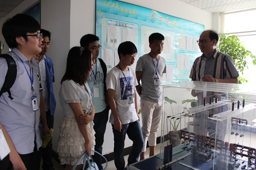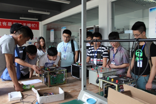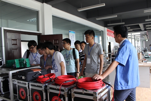 木森電氣項目組的學生在公司生產(chǎn)車間了解產(chǎn)品情況