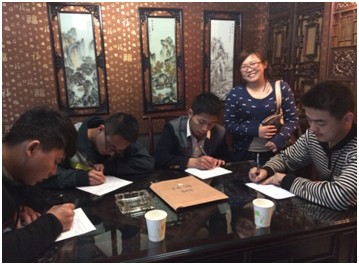 2014年4月10日下午,景寧就業(yè)老師陳慧帶四名學生去北京美??萍加邢薰久嬖?,四名學生分別是李永永、葉飛、鄧乾蔚、張博。