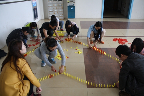 此次活動與前三屆比賽相比,任務(wù)難度有所加大,個別任務(wù)點需耗時40分鐘才能完成,比如個性點—多米諾骨牌,項目道具包含5萬塊骨牌,每隊領(lǐng)取相應(yīng)的多米諾骨牌,按照參考圖型,由紅色、黃色、紅色三個小方塊擺放成多米諾圖形,并能成功形成多米諾效應(yīng)。此項任務(wù)考驗了團隊成員之間的協(xié)調(diào)能力以及團隊的凝聚力。