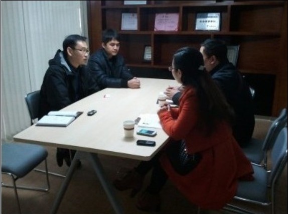 荊職學(xué)院老師與安通科技負(fù)責(zé)人正在洽談校企合作事宜
