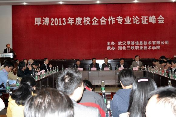 “厚溥2013年度校企合作論證峰會”于2013年11月2日下午在湖北三峽職業(yè)技術(shù)學(xué)院隆重舉行,此次論證峰會由武漢厚溥企業(yè)主辦,湖北三峽職業(yè)技術(shù)學(xué)院承辦。