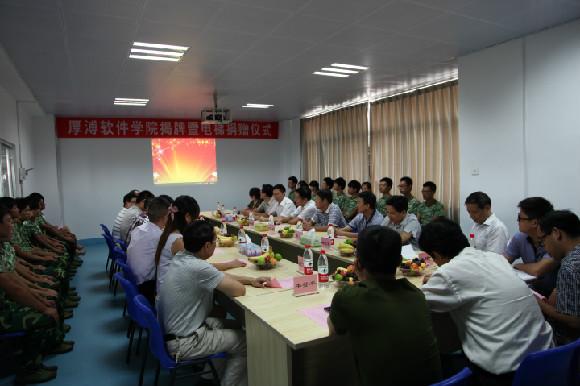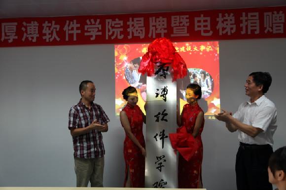 在熱烈的掌聲和歡快的音樂聲中,校黨委書記韓德鋒、武漢厚溥教育科技有限公司董事長(zhǎng)陳相陽(yáng)共同為“厚溥軟件學(xué)院”揭牌。隨后舉行了電梯捐贈(zèng)儀式。